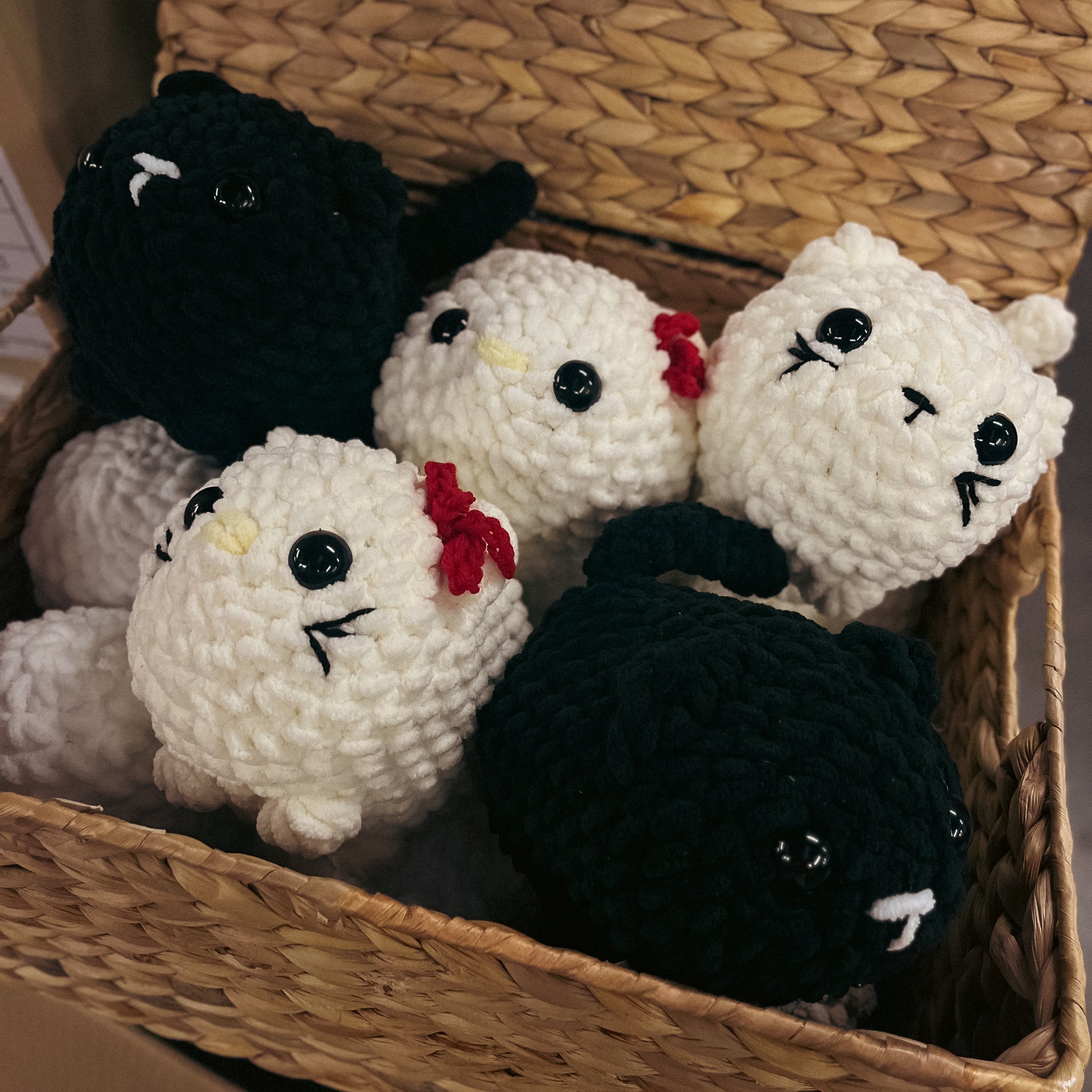 Made of chenille yarn and poly-fil stuffing. Please be cautious around children as the safety eyes are plastic!